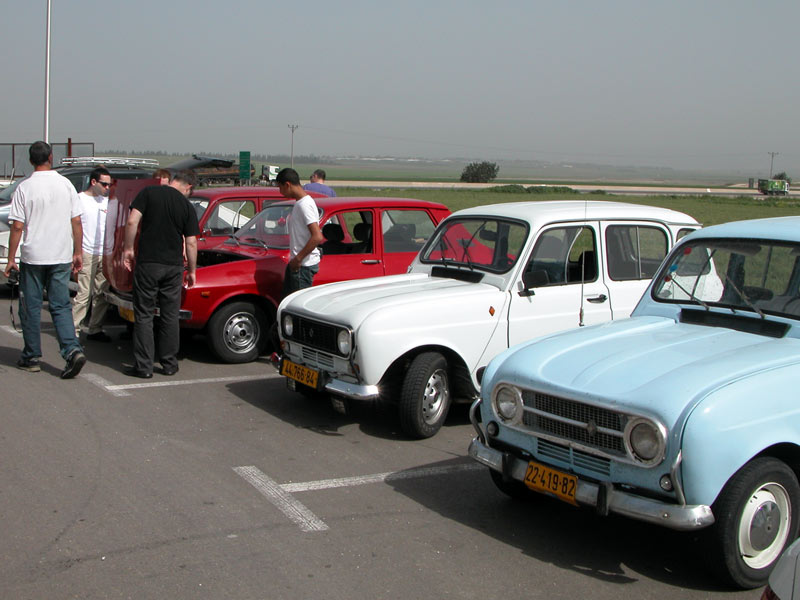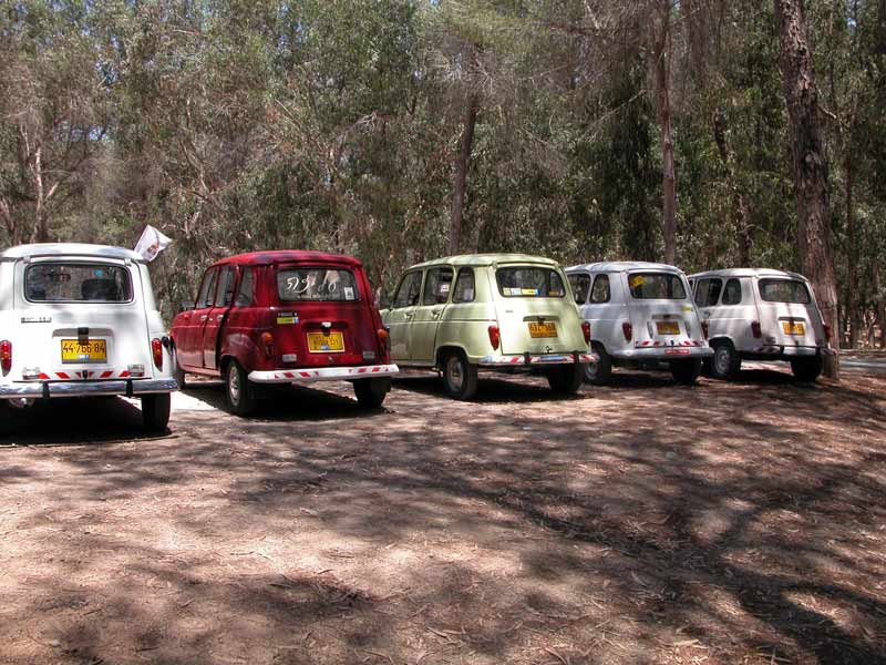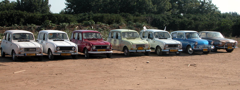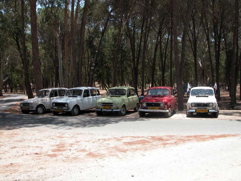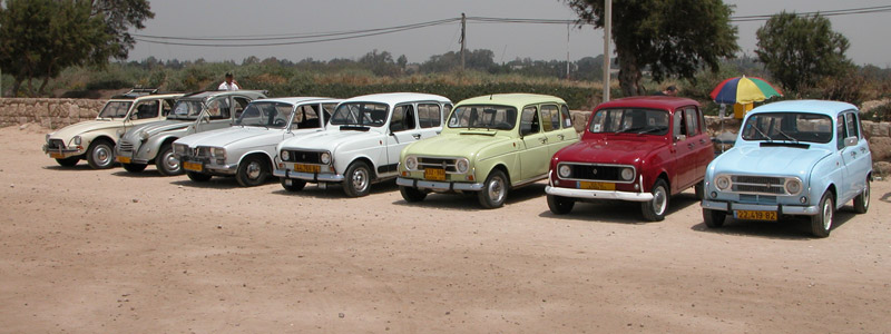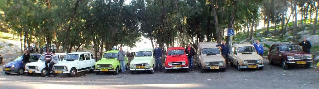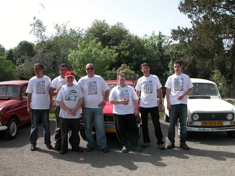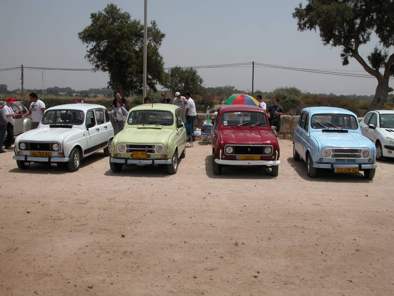 | מפגש המייסדים המפגש הראשון של חברי מועדון רנו 4: דני, ראמי, אסף, רם, עופר, וירון. אורחים ממועדון הדה שבו: שמוליק, יואל, ראובן, וגא'ק. יובל עם הרנו 16 אורחים נוספים ובני משפחה. קיסריה - מאי 2009 |