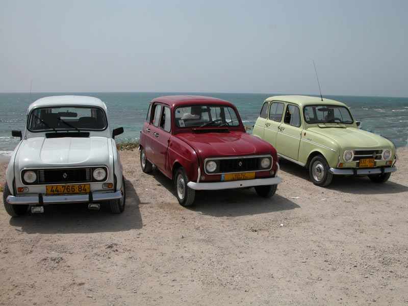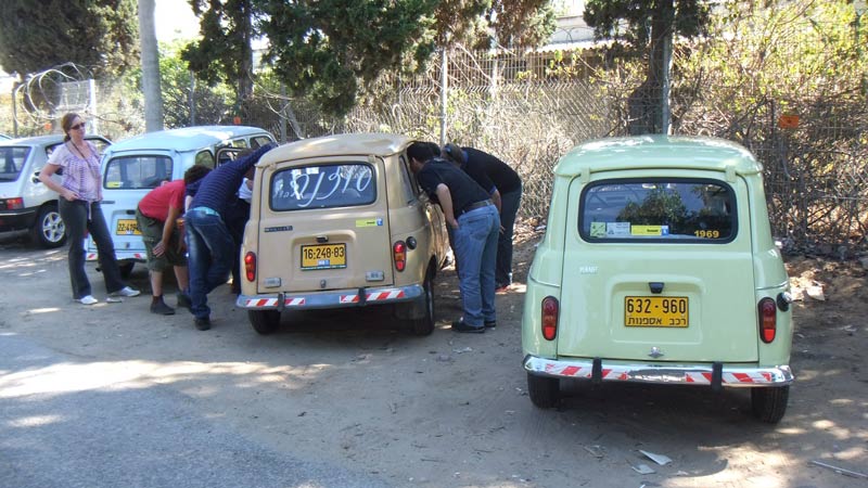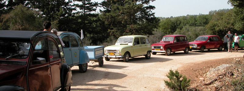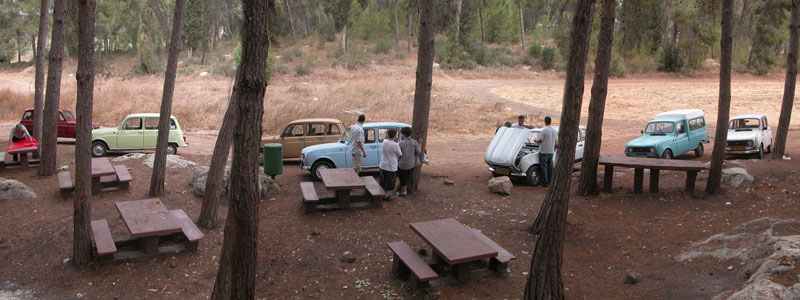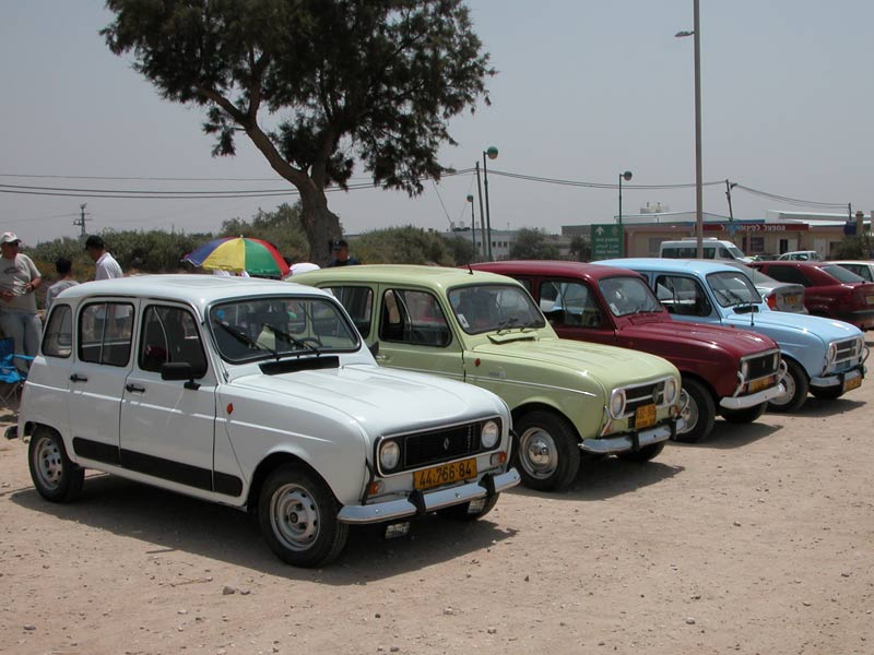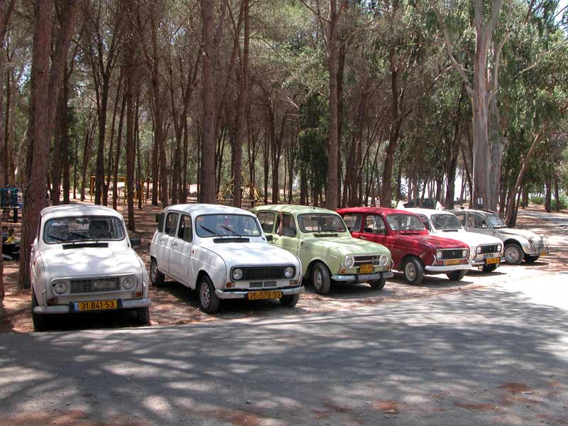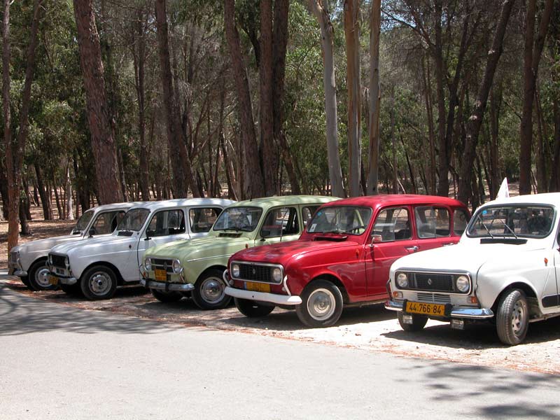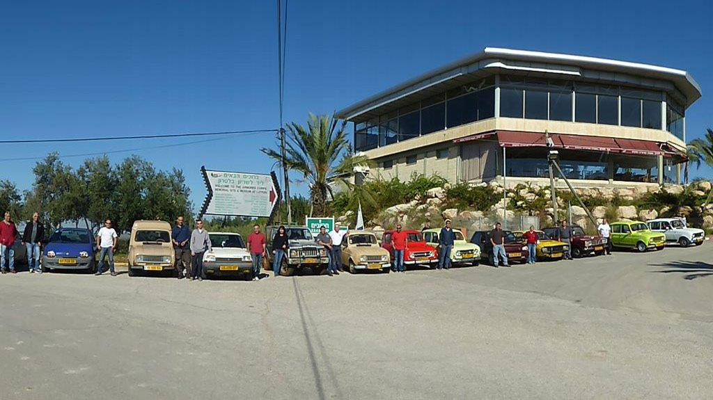 | מפגש המייסדים המפגש הראשון של חברי מועדון רנו 4: דני, ראמי, אסף, רם, עופר, וירון. אורחים ממועדון הדה שבו: שמוליק, יואל, ראובן, וגא'ק. יובל עם הרנו 16 אורחים נוספים ובני משפחה. קיסריה - מאי 2009 |