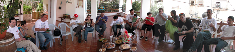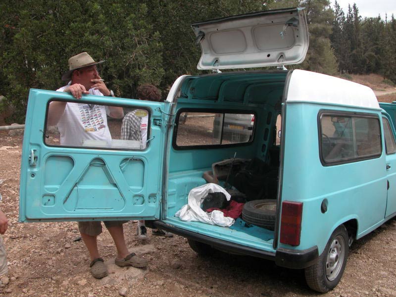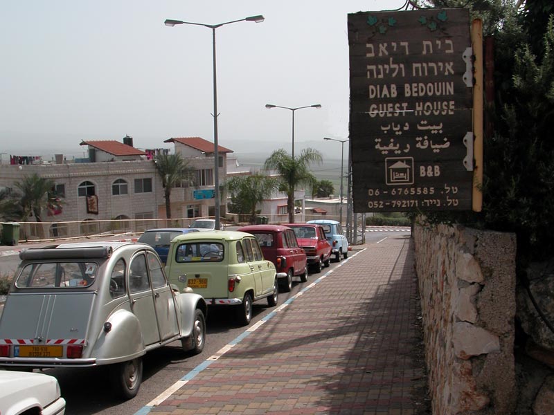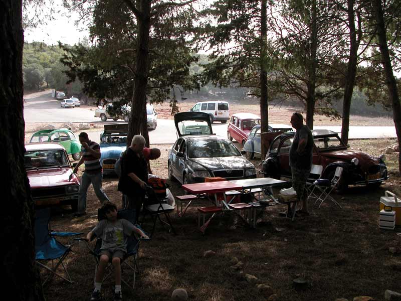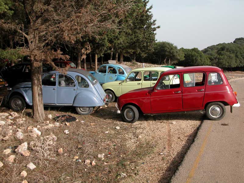 יצאנו שוב מקצוות ארץ (מירושלים ועד שלומי) לכוון צומת מגידו ובשעת ה-"ש" התיצבנו כולם למפגש. דני, אסף, עופר, רם, אורן ורמי. הצטרפו אלינו ז'אק עם הדה-שבו, מיכאל עם סיטרואן BX וגיל שחולם על רנו 4 עוד מזכרונות הילדות. רמי המארח נתן תידרוך קצר והופ יצאנו לכוון כפר שיבלי. נסיעה קצרה בכביש הסרגל ופניה ימינה לכביש עוקף עפולה ממזרח. עברנו ליד "דרך נוף גלבוע" לעין חרוד ומשם בין שדות ירוקים וגבעות נישאות, נוף הגליל התחתון היפה, הגענו לשיבלי שלרגלי התבור. חנינו ליד בית "דיאב" ביתו של דיאב שיבלי , אירוח כפרי ומוזיאון פרטי למורשת הבדואים. הובלנו ע"י בעל הבית לחצר ובה אוהל אירוח בדואי, שם התישבנו לקבלת פנים מרגשת , עוגות, פיתות עם זעתר, תה וקפה בפנג'אן. בעל הבית סיפר לנו על מורשת הבדואים ואף לקח אותנו למוזאון הפרטי שלו שבו אוסף של כלים חקלאיים, כלי בית, כלי מטבח, שטיחים, ציוד אישי ועוד. ששמשו את הבדואים לאורך השנים. משם חזרנו לרכבים וטיפסנו במעלה הר תבור כשאנו חוצים את כפר שיבלי עד למנזר שבראש ההר. אכלנו עוגת יום הולדת, חילקנו מתנות לחתן יום ההולדת - דני, ולציון האירוע גם חולצות. משם לקח אותנו רמי לביתו, שם גילינו אוצר - גרוטאות רנו 4 (בינהן זו מהסרט "איים אבודים") והמון חלקים. הסתובבנו בחצר ובסככה מוקסמים, כל אחד קיבל את מבוקשו ואז עלינו למרפסת לארוחה כמיטב האירוח הבדואי. כפר שיבלי, תבור - מרץ 2010 |