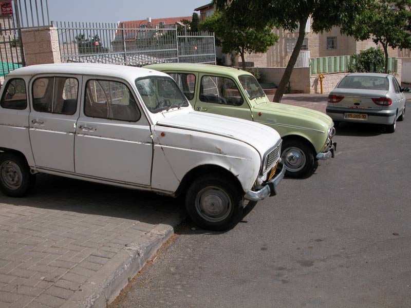 הגיע זמן בדיקת המנוע. כידוע לרכב היה טסט אחרון בשנת 2005 מאז הוא עמד בשדה. בדיקת שמנים, מילוי חצי ליטר מים שהיה חסר, חיבור המצבר ו.... נגיעה בסוויטץ' - המנוע משתעל טיפה ממתין לדלק שיגיע מהמשאבה. ואז שפריץ רציני מצינור הדלק לכל הכיוונים. יש סדק בצינור בחיבור לפילטר. תוך דקה הצינור מקוצר ומנסים פעם שנייה. שוב נגיעה בסוויטץ' יש סטרטר יש דלק ו... יש. המנוע פועל ! כמה דקות, המנוע מגיע לטמפרטורת עבודה. כל חומרי הניקוי ששפכתי קודם מתחילים להעלות עשן. אבל המנוע עושה רושם טוב, אין עשן לבן, אין עשן שחור ונוזלים אחרים שיוצאים מהאגזוז. נראה תקין. יש רעש קל של חור במערכת הפליטה, הדוד והאגזוז נראים חדשים, כנראה מהמניפול. ידוע לי (מידע מוקדם) שבנסיעה המנוע מתחמם, לכן בדקתי ברדיאטור סירקולציה של המים והיא נראית קצת חלשה, אני מקווה שזה רק רדיאטור סתום. בניסיון לנסוע הקשישה לא נותנת להכניס הילוך, האם הגיר דפוק? או הקלאטץ'? מכבים את המנוע, לחיצה על הקלאטץ' והילוך נכנס. ניסיון הנעה והגברת מקפצת, עוד ניסיון או שניים והקלאטץ' התפוס משתחרר. זהו אפשר לנסוע. בכל מקרה עם כבר המנוע פועל אז עושים סיבוב ומזמינים את כולם לצילום משפחתי, הסבתא הזקנה "לימונית" 1969 ואחותה הקטנה ממנה בחמש שנים "שלגית" 1974 מסתדרות למסדר בוקר לאחר צחצוח וגילוח. גם הנינה הצעירה מגאן 2001 מתגנבת לצילום ונושאת בגאווה את סטיקר מועדון רנו 4 ישראל. |