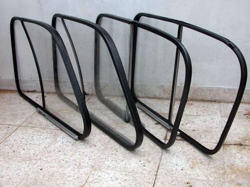 החלונות מתחלקים לשניים, חלונות קבועים בגוף הרכב וחלונות נפתחים בדלתות.הערכת מצב: חלונות קבועים - הזכוכית במצב טוב, ישנם לכלוכים ושריטות. גומיות החלון שלמות עם סימני תחילת יובש. חומר אטימה בין החלון לגומי יבש ומתפורר. פס ניקל המשמש לנעילת הגומיה ולקישוט , איבד את הצבע לחלוטין, יבש ומתפורר. קיימים רקבונות בתושבות של החלונות הקידמי והצדדיים (בגוף הרכב) ונדרשת עבודת פחחות והשלמת התושבות לפני החזרת החלונות למקום. חלונות נפתחים - כאן הבעיה קשה יותר. למרות שהזכוכיות במצב סביר, מסגרות החלון רקובות בחלקן . תעלות החלון מתפוררות לחלוטין ונדרשת בניה של המסגרות והתעלות מחדש. פעולות שבוצעו: חלונות קבועים - פירוק כל החלונות, ניקוי הזכוכית והברקה. כל הגומיות הושרו במים וסבון למספר ימים לריכוך הליכלוך. לאחר מכן ניקוי יסודי עם מברשת להוצאת כל הליכלוך וחומר האטימה שיבש והתפורר. הורדת שאריות צבע מתיקוני צבע ישנים. הגומיות הנקיות נמרחו בחומר ניקוי לגומי/פלסטיק (חומר ניקוי לדשבורד) והושארו כך מספר ימים. לאחר ניגוב השאריות התקבלו גומיות רכות וגמישות כמו גומיות טריות. תיקון הפחחות והצבע מבוצע ע"י בעל מקצוע, חיתוך כל הפח הרקוב בעיקר מתחת לחלון הקידמי בשני הצדדים והחלונות הצדדים האחוריים. השלמת הפח במקום החסר וריתוחו לגוף, החלקה, מילוי חומר וצבע עד לקבלת מראה גוף הרכב במקור. הרכבת החלונות לאחר סיום עבודות הצבע. איטום רווחים בגומיות עם סופר 7 שחור, הרכבת פס הניקל חדש ולא לשכוח פחית כיסוי המגינה על קצוות הפס. חלונות נפתחים - פירוק כל המסגרות, כל חלון מחובר עם 6 עד 9 ברגים לדלת. הפרדת החלונות מהתעלות ומהמסגרות מתכת. טיפול בזכוכית ובגומי כמו בחלונות הקבועים. בתמונה ראשונה ניתן לראות את המסגרת הפגועה. בתמונה שניה אפשר לראות את שלבי תיקון המסגרת: 1 - חיתוך חלקים רקובים . 2 - השלמת החלק החסר עם פחית הגזורה בדיוק בגודל. 3 - הלחמת הפחית למקום עם בדיל. 4 - חיתוך עודפים ושיוף ליצירת קו אחיד. לאחר תיקון המסגרות הם עברו ניקוי יסודי מחלודה וצביעה ביסוד וצבע שחור. הרכבת תעלה חדשה. התאמה למסגרת החלון והכנה לברגים והרכבה לדלת עם ברגים חדשים. איטום בין הדלת למסגרת נגד חדירת מים עם סופר 7 שחור. |