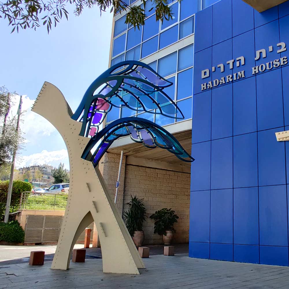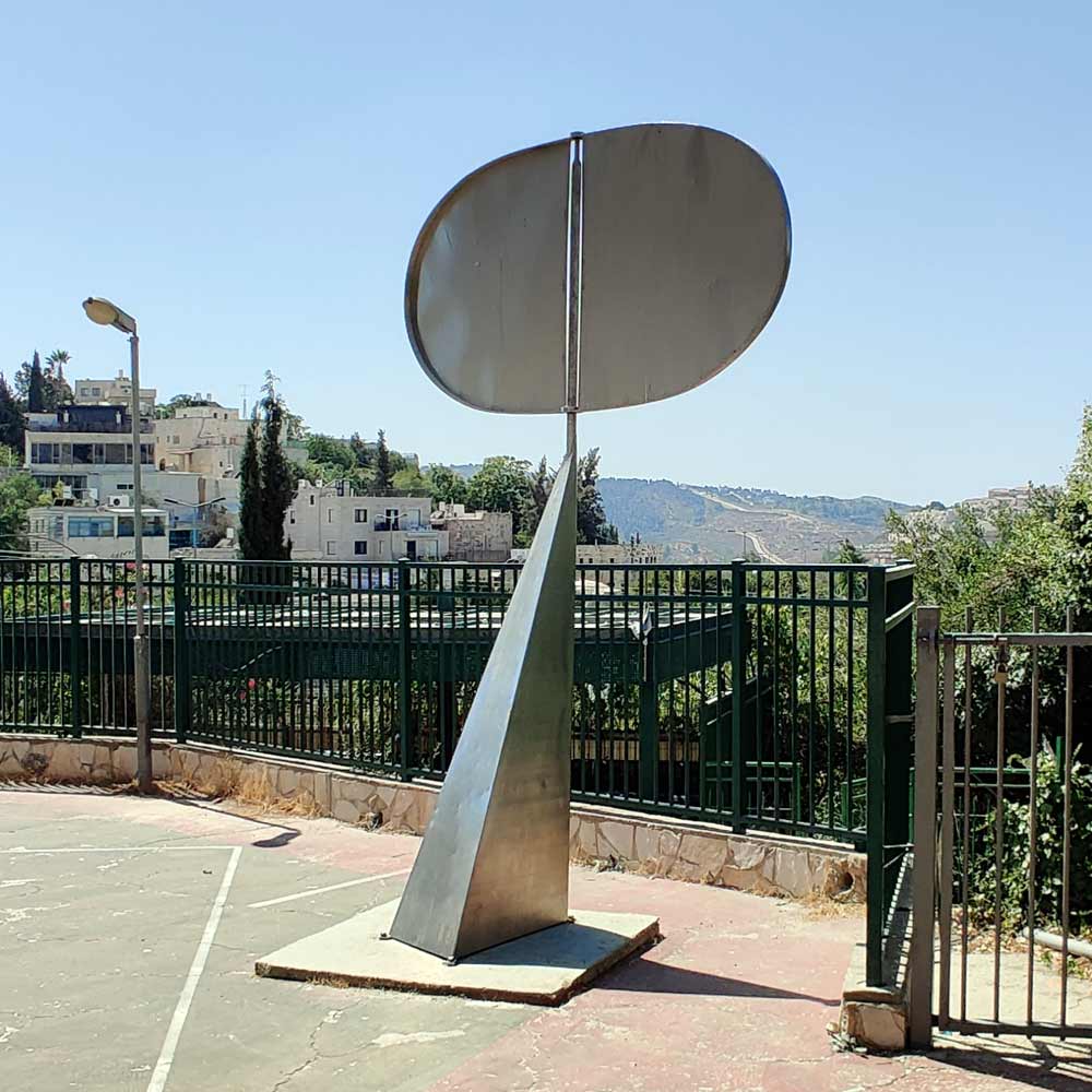מידע: | לזכרו של אדם כנפו נחמני, בוגר בית הספר, שנפל בעת שרותו הצבאי. אתר האמנית דבורה רג'ואן |