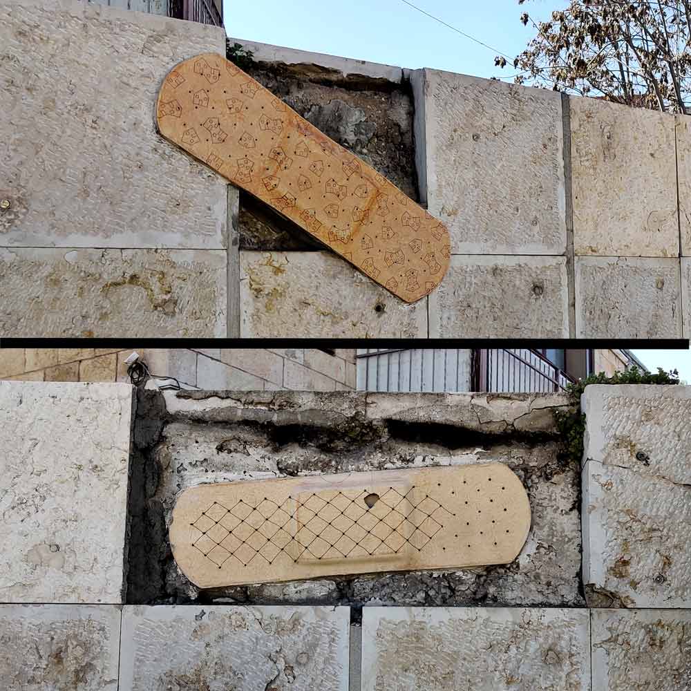 מידע: | הוצב ב-2011 וחלק מתערוכה "ובליבה חומה" של מוסללה מ-2014. הושחת והוסר ב-2020 התערוכה באתר מנופים צילום: google street view |