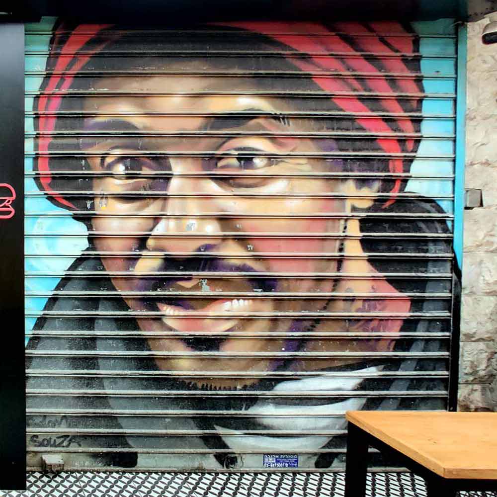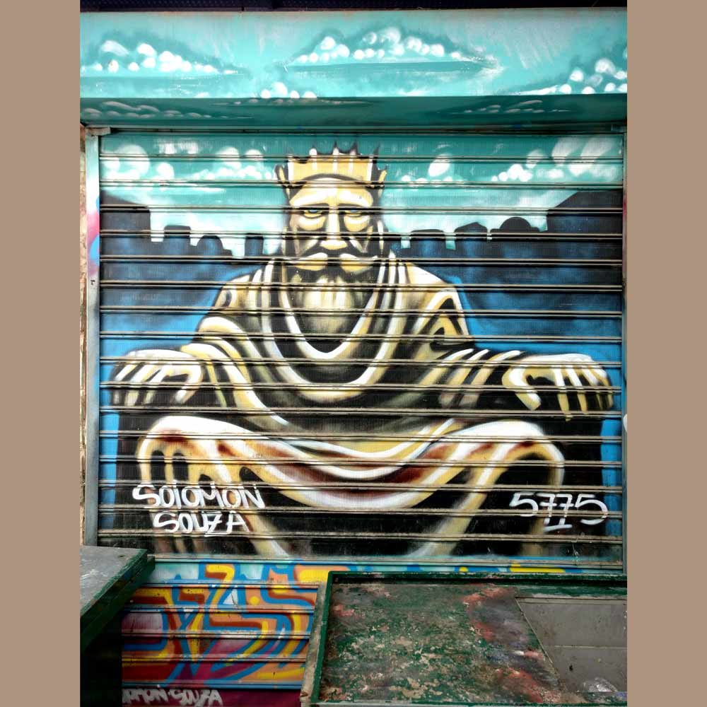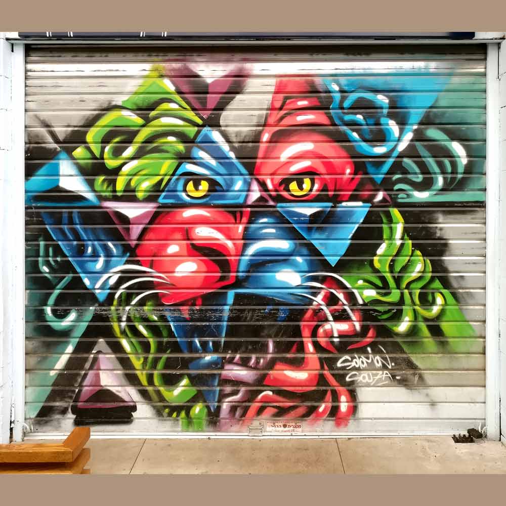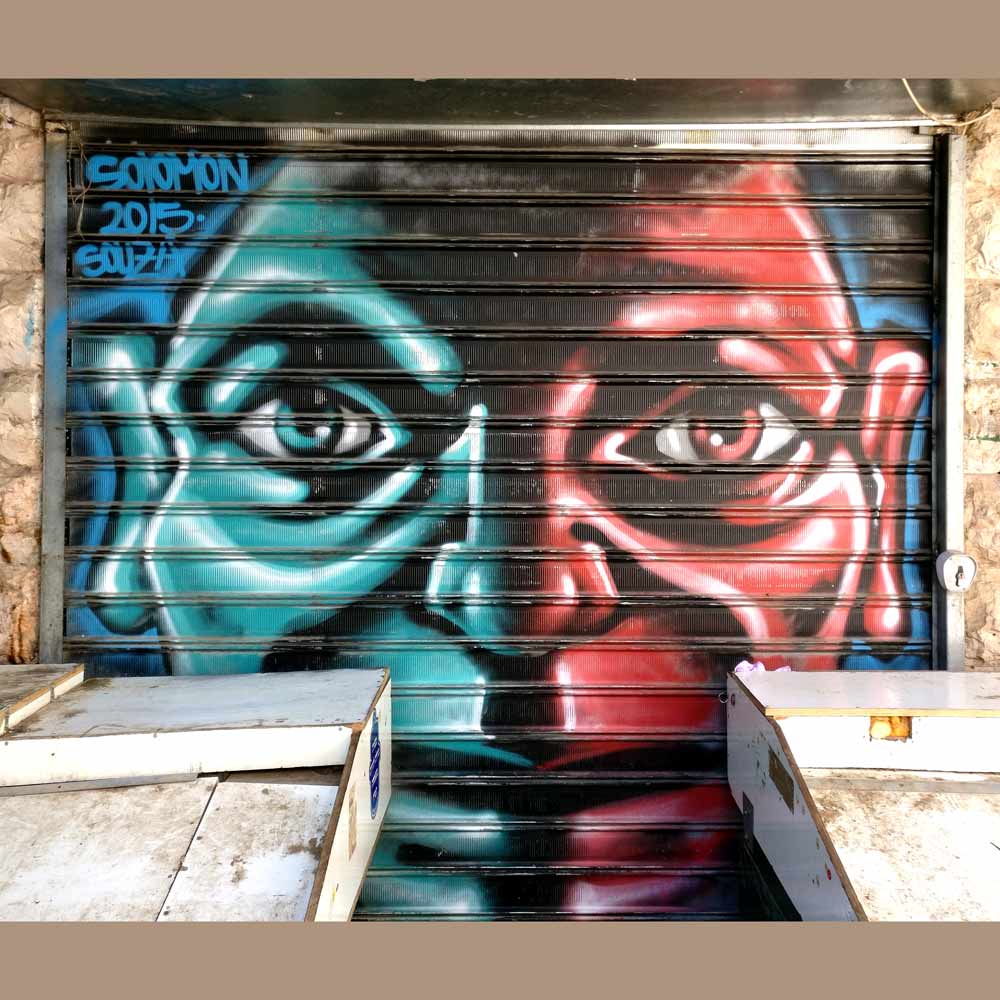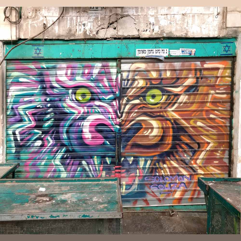 החל האמן סולומון סוזה פרוייקט שבמסגרתו כוסו רוב תריסי דוכני השוק בציורי קיר וגרפיטי.