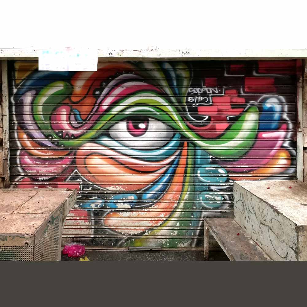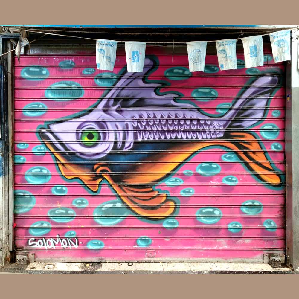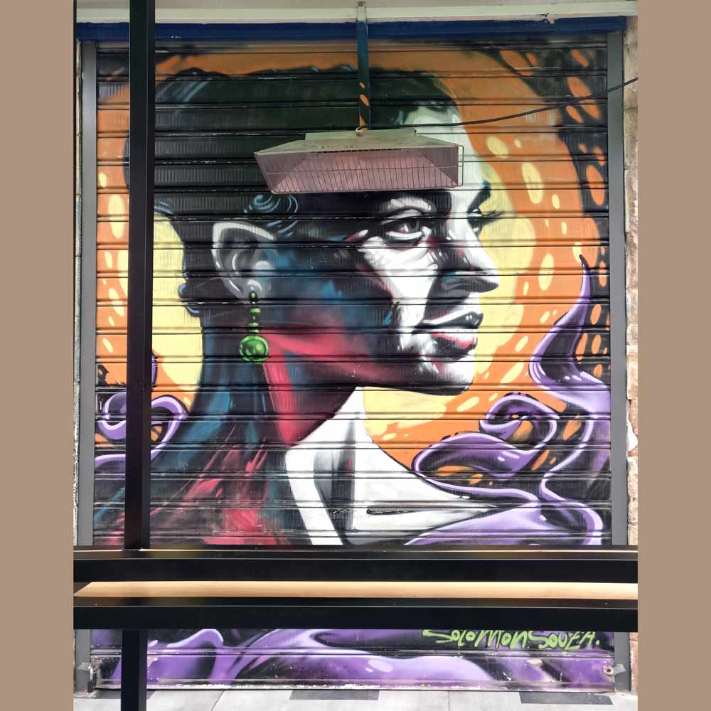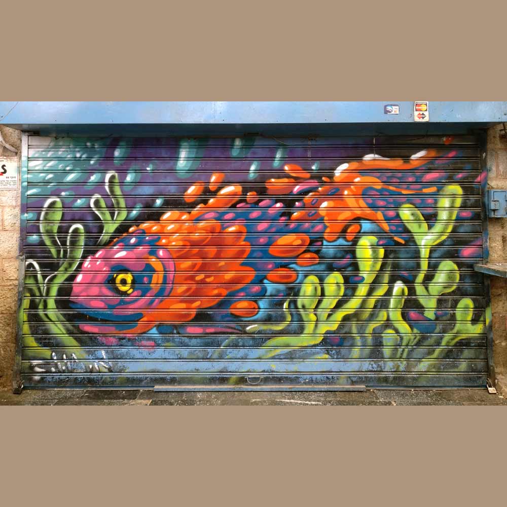 החל האמן סולומון סוזה פרוייקט שבמסגרתו כוסו רוב תריסי דוכני השוק בציורי קיר וגרפיטי.