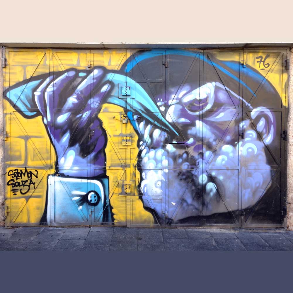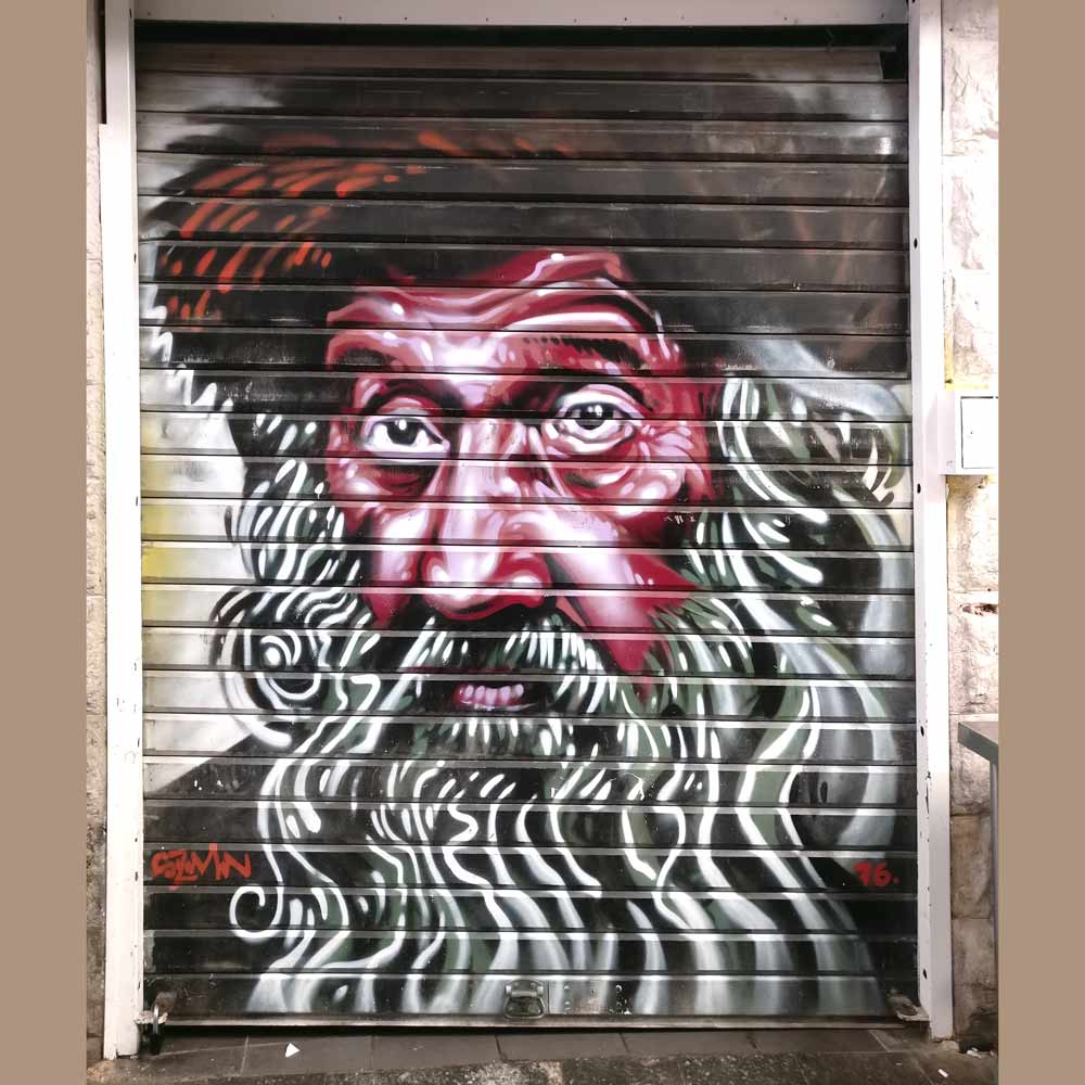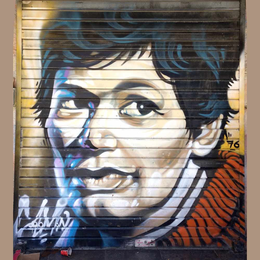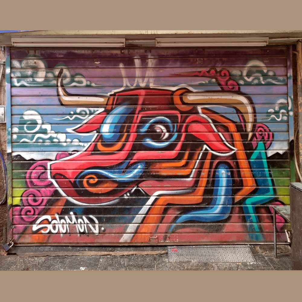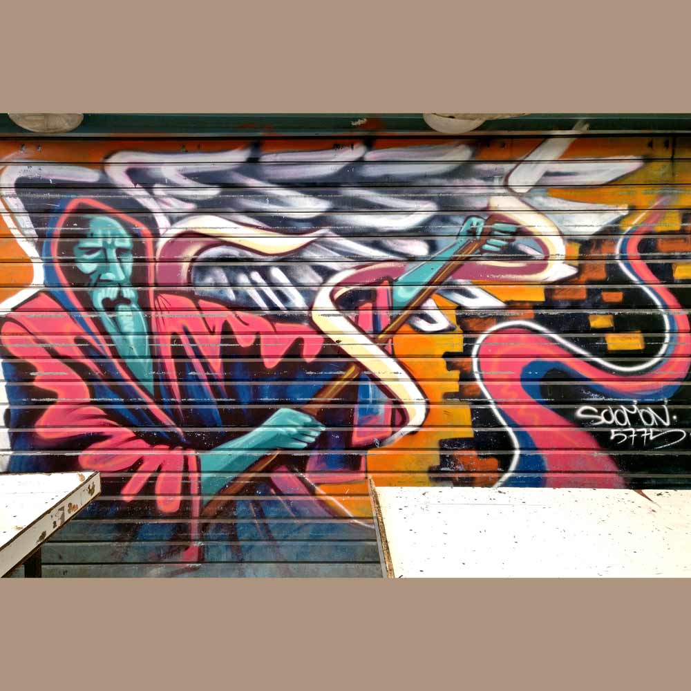 החל האמן סולומון סוזה פרוייקט שבמסגרתו כוסו רוב תריסי דוכני השוק בציורי קיר וגרפיטי.